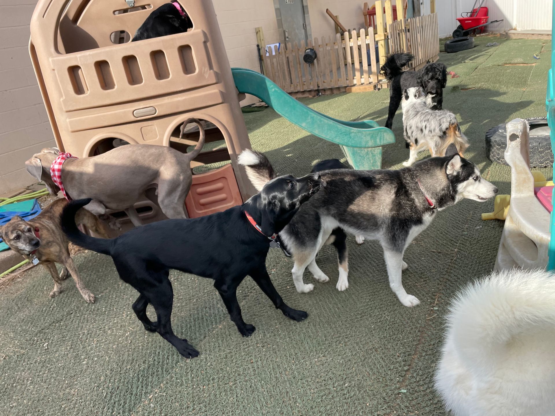 Doggy Day Care: The goal of our daycare is to provide a safe and welcoming environment for your pet while you're at work or running errands. We have multiple daycare options from jungle gyms, toys, sandboxes, etc.