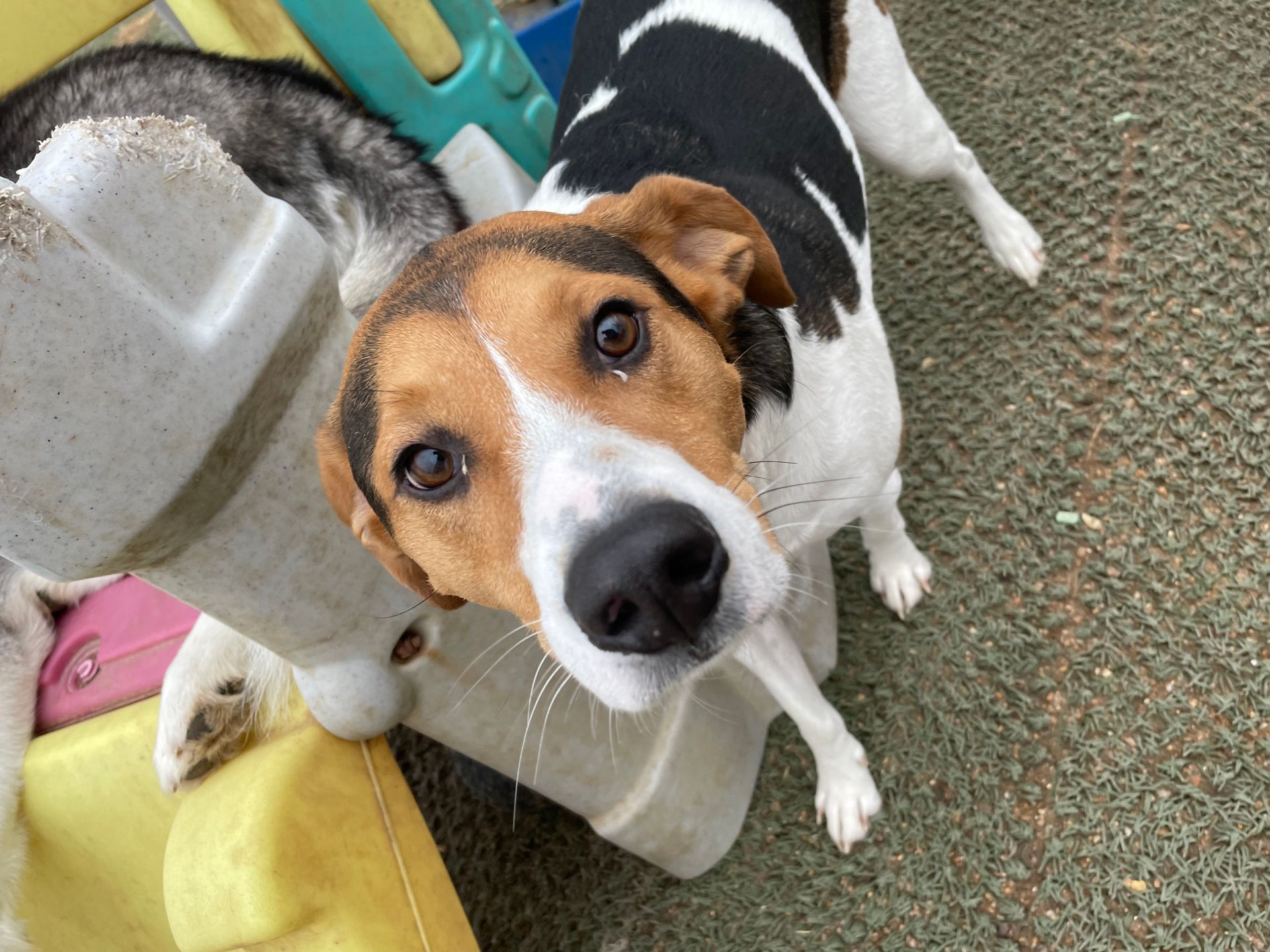 We offer an open and inviting environment for your pet. Keeping your pet active will be no problem with the variety of toys we have and outside time every hour. The outside is a fenced-in natural grass area covered by an artificial grass overlay for our friends to play on. We also make sure that our friends have fresh, clean water every hour. It is essential that your friend is happy and healthy while spending their time with us.
